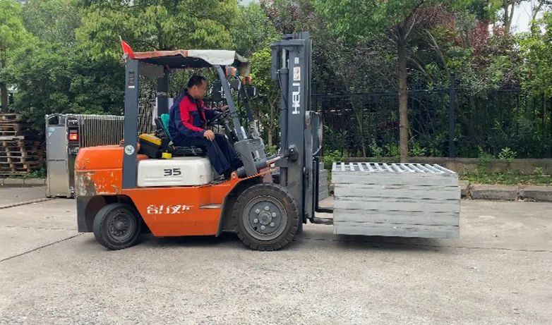 叉車比賽:參賽選手正在進行貨物運送