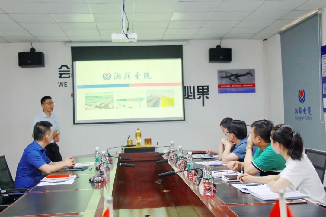 在企業展廳,陳訓武副主任一行對湘聯電纜的廠區情況、線纜產品生產工藝流程等有了基礎了解。在隨后的座談會中,品牌部總監楊潔就公司的技術研發、人才培養、品牌建設等多個方面詳細匯報。調研組對湘聯電纜的發展成就表示肯定,并希望湘聯能夠堅定信心,發揮優勢,加強創新,爭取更進一步發展。同時就園區相關惠企政策進行詳細解讀,表示管委會也將解企業所需,想企業所想,為企業發展創造有利條件。