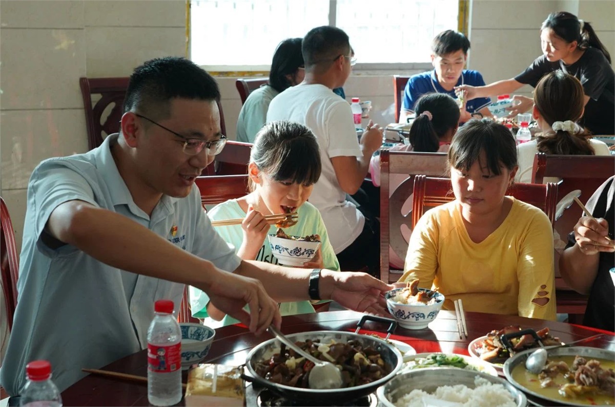 助學(xué)不僅是物質(zhì)上的援助,更重要的是對(duì)孩子們精神上的激勵(lì)與引導(dǎo)。為了拉近與受助學(xué)生的情感距離,在瀏陽(yáng)經(jīng)開區(qū)駐苗兒灘幫扶工作隊(duì)和苗兒灘政府的協(xié)調(diào)幫助下,8月22日傍晚,湘聯(lián)電纜“芯”光助學(xué)基金會(huì)邀請(qǐng)受助孩子和其家長(zhǎng)們來到苗兒灘政府,通過一起吃晚餐和開展座談會(huì)的形式,與受助學(xué)生面對(duì)面交流,了解他們的學(xué)習(xí)和生活情況,并鼓勵(lì)學(xué)生們要立志向上,好好學(xué)習(xí),砥礪成才。